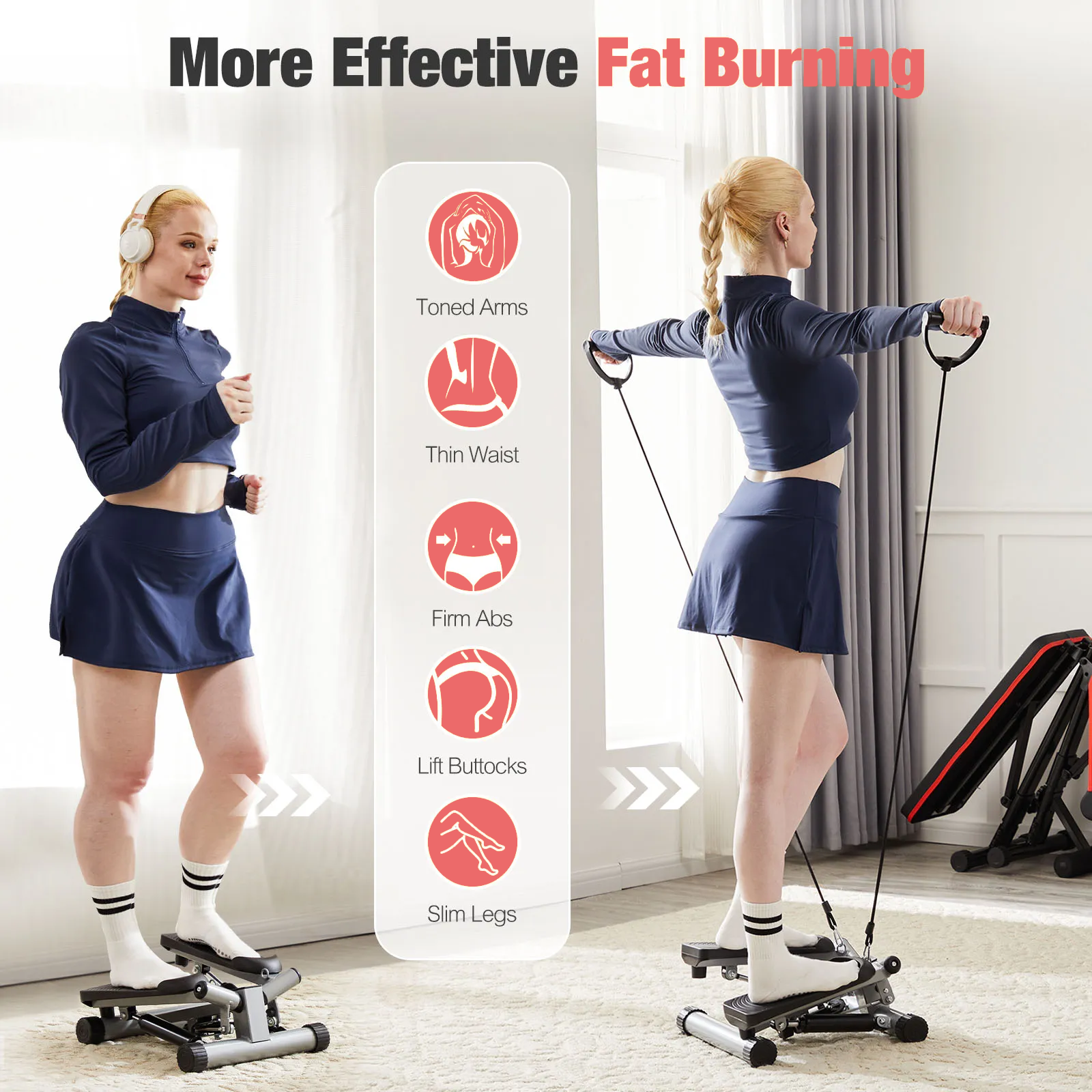 Answer 3: Yes, it includes resistance bands that enhance the versatility of your workouts, allowing you to incorporate upper body exercises into your routine.